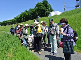 | 風は強かったですが、五月晴れのお天気に恵まれ、緑に覆われた利根運河を歩くのはとても気持ちが良かったです。 柳沢さんにジュウニヒトエ、キンラン、ギンラン等春の草花の説明を受けながら 空を見上げるとノスリ、チョウゲンボウ、とびっきりはサシバがすぐ近くまで姿を見せてくれ、みんな感激してしまいました。 昼食は野田ファームでとらせて頂きました。 田植えの終わった田んぼを見ながら ツバメにお弁当を見せびらかしながらの昼食は最高。 野田ファームはお休みにもかかわらず、見学させて下さり有難い事でした。 コウノトリは オスが自分たちで作った立派な巣の上で盛んに巣の手入れをしていました。 前回下見の時は 二羽が見学者の方に飛んで来てくれましたが、巣を作ってからはあまり飛ばなくなったと言うお話でした。 それでも間近にコウノトリを見学でき、改めて其の大きさを確認しました。 早くヒナが生まれるといいな〜と期待が大きくなります。 柳沢さん、野田ファームの関係者の皆様、大変お世話になり有難うございました。 |